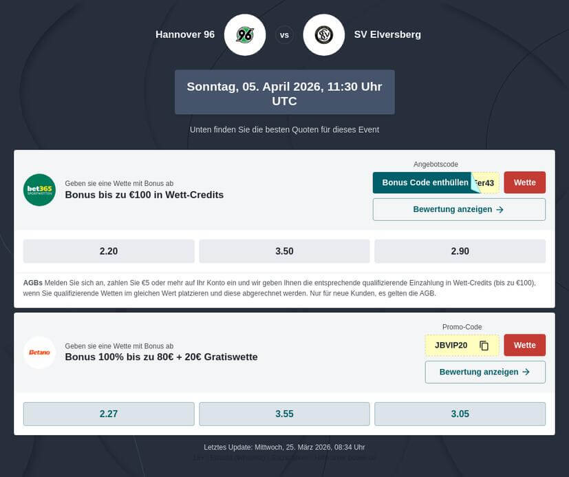 - Sieg SV Hannover 96 2.27 Unser Tipp!