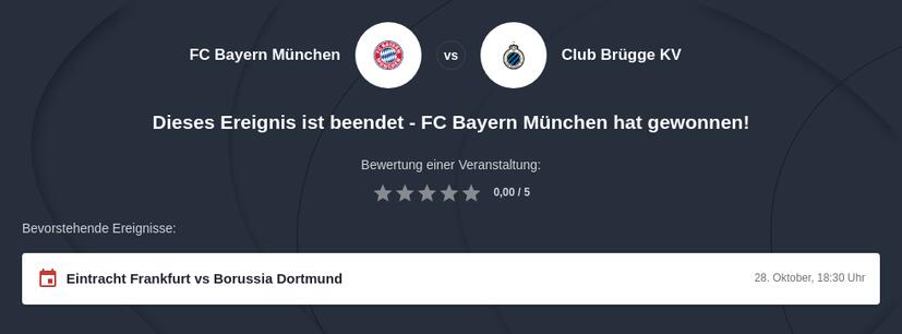 6.3 🏟️ Wann spielt Bayern München gegen Club Brügge?