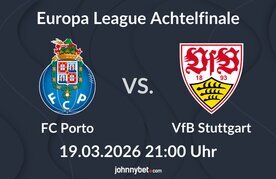 Die Achtelfinal-Paarung schauen wir uns in der FC Porto - VfB Stuttgart Analyse genauer an. Neben den aktuellen Quoten finden Sie bei uns die Top-Wetten, unsere Buchmacher-Empfehlungen und die Übertragungspartner für das Duell.