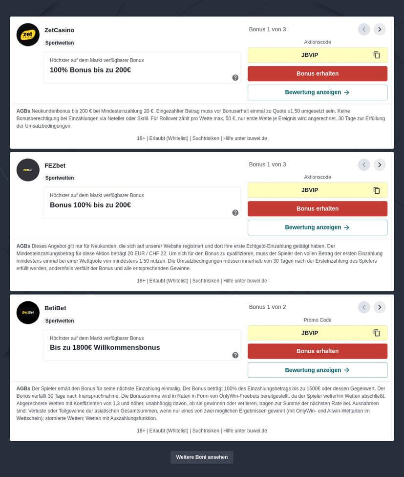 Sobald das Datum feststeht, sollten Sie für Sportwetten die Wettanbieter Betano und bet365 überprüfen. Dort finden Sie nicht nur hohe Usyk vs. Fury Wettquoten, sondern werden durch die deutsche Lizenz der Wettbüros ebenfalls optimal geschützt.